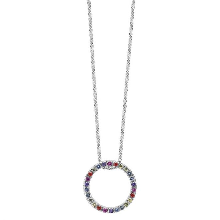 Sølv Rainbow cirkel halskæde med mix cubic zirkoner Ø14 mm