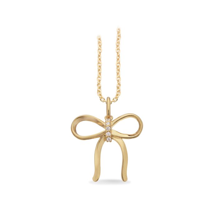 Scrouples sløjfe vedhæng i forgyldt med zirkonia - inkl. halskæde