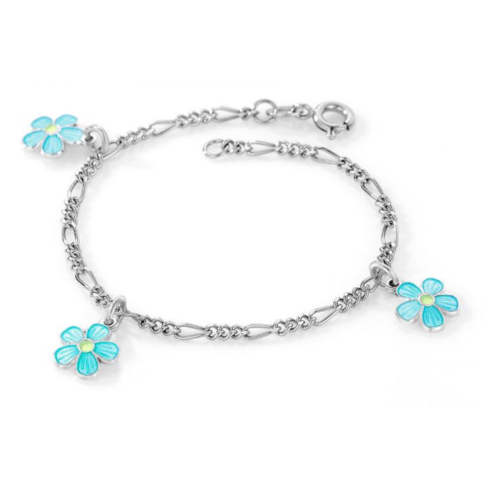 Pia & Per charms børnearmbånd med blomster i sølv, turkis
