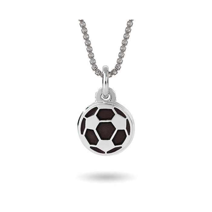 Pia & Per børnehalskæde i sølv med fodbold, sort