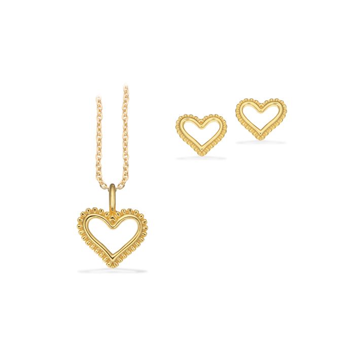 Scrouples smykkesæt i forgyldt med hjerte - halskæde og ørestikker