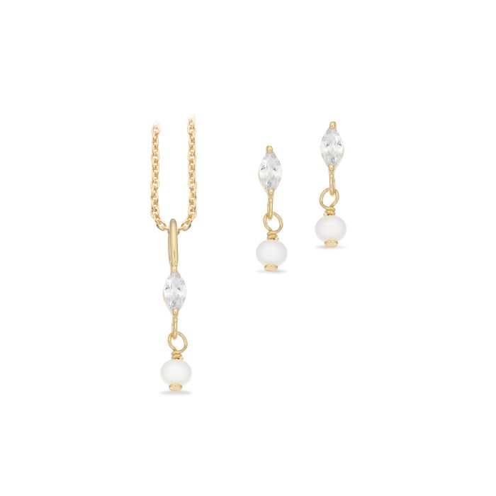 Scrouples smykkesæt i forgyldt med perle og zirkonia - halskæde og ørestikker
