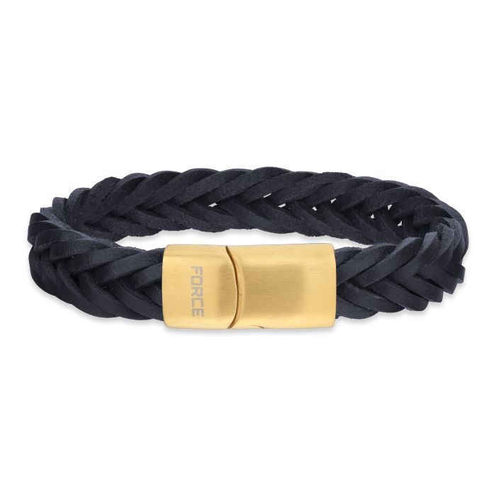 Force armbånd i sort læder med guldfarvet stållås