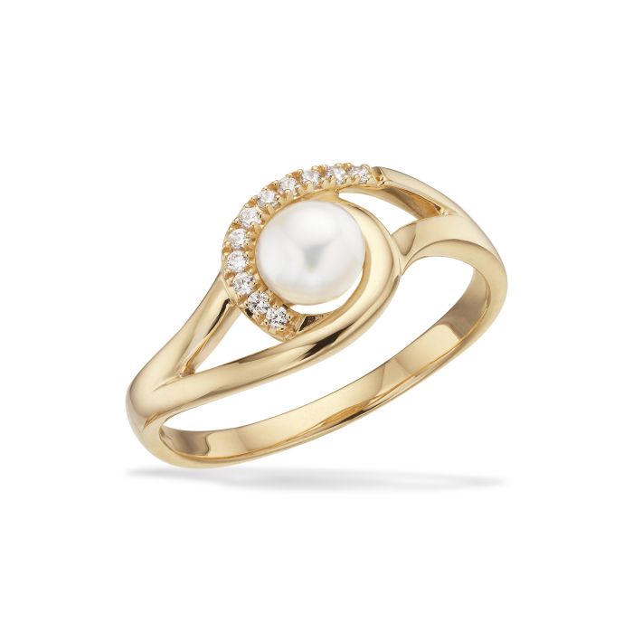 Scrouples ring i 8 kt guld med perle og cubic zirkonia