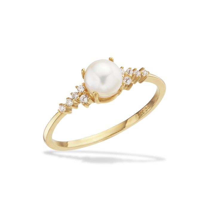 Scrouples ring i 8 kt guld med perle og cubic zirkonia