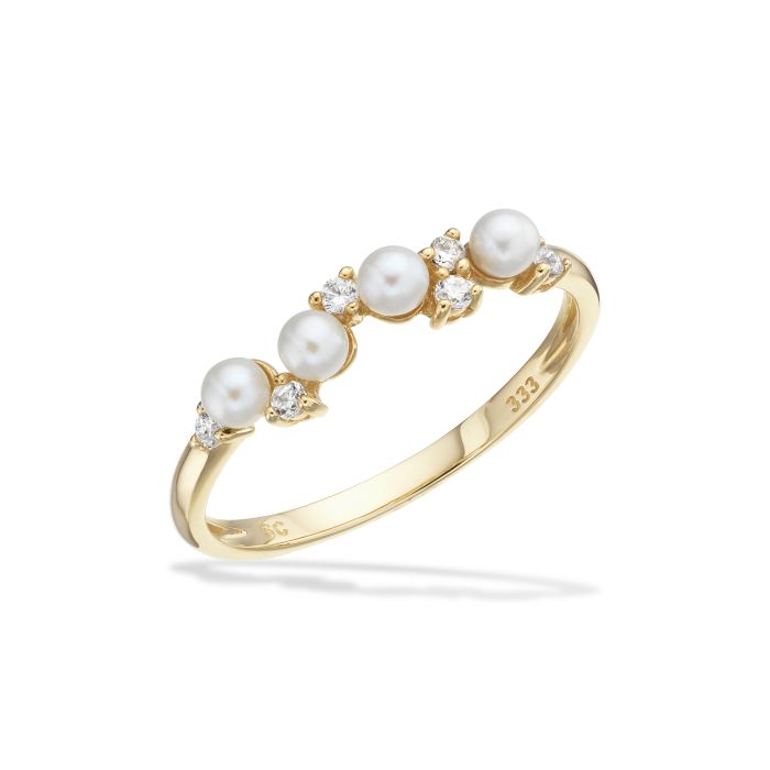 Scrouples ring perle/cubic zirkonia i 8 kt guld