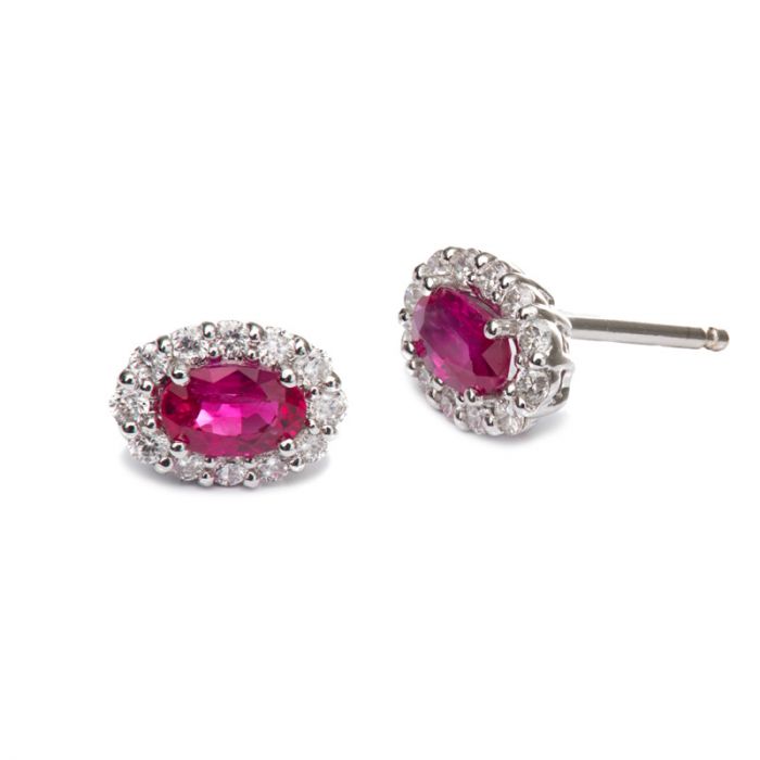 Rosetørestikker i 14 kt hvidguld med rubiner og brillanter