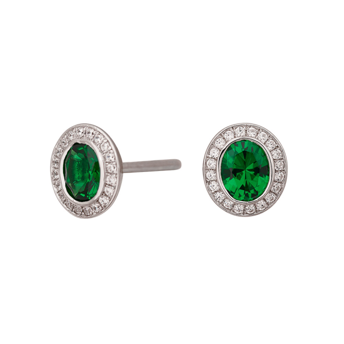 Siersbøl Sølv roset ørestik med syntetisk smaragd og cubic zirkonia