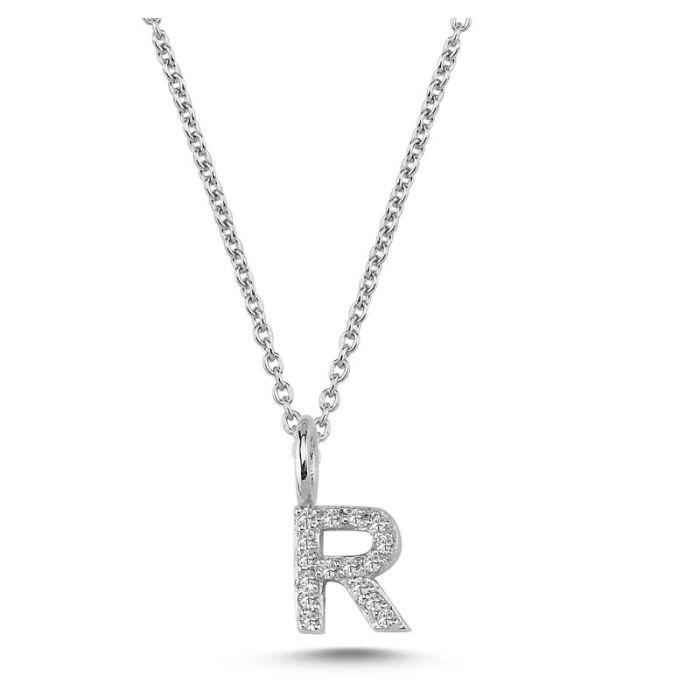 Nuran R vedhæng i hvidguld med diamanter - 6,5mm - uden kæde
