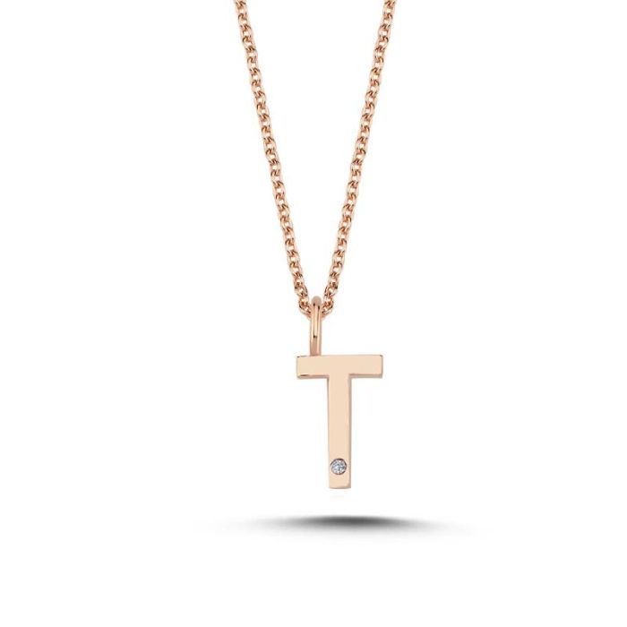 Nuran T vedhæng i rosaguld med 1 diamant - 9,5mm - uden kæde