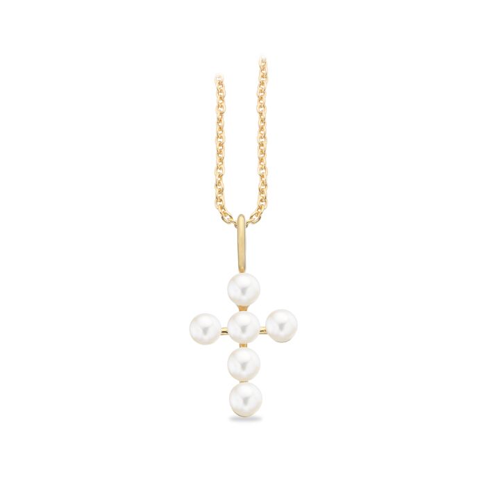 Scrouples Kors vedhæng i forgyldt med perler - inkl. halskæde