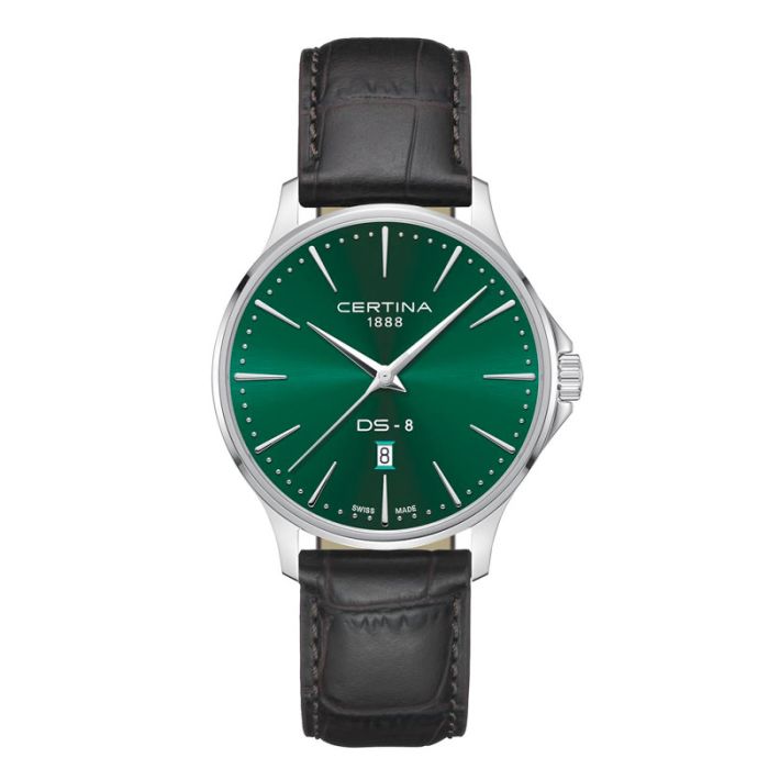 Certina DS-8 herreur i stål med grøn skive og sort læderrem - Ø40