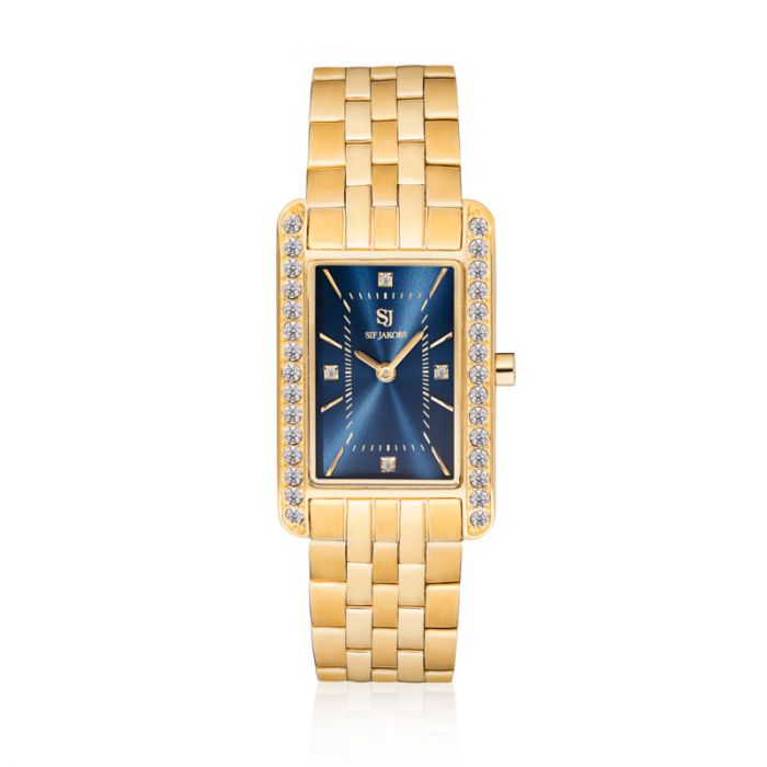 Sif Jakobs Martina dameur i guldfarvet med blå skive og klare zirkoner