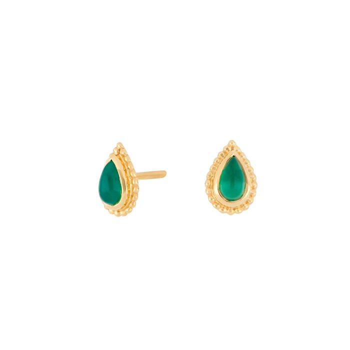 Nordahl Jewellery Joy52 forgyldte ørestikker med grøn calcedon