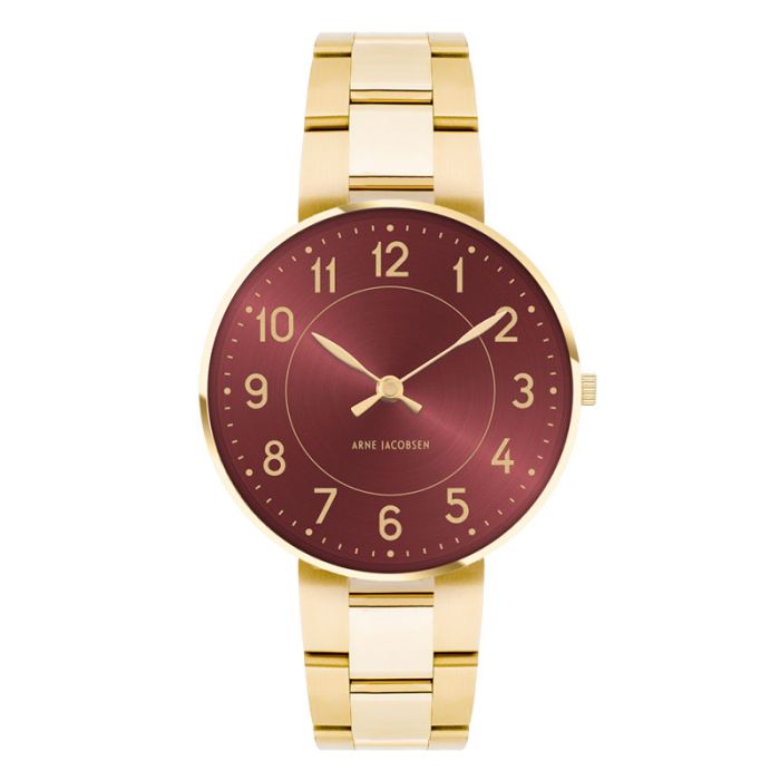 Arne Jacobsen Station i bourgogne med lænke - 34 mm Stål/sort rem