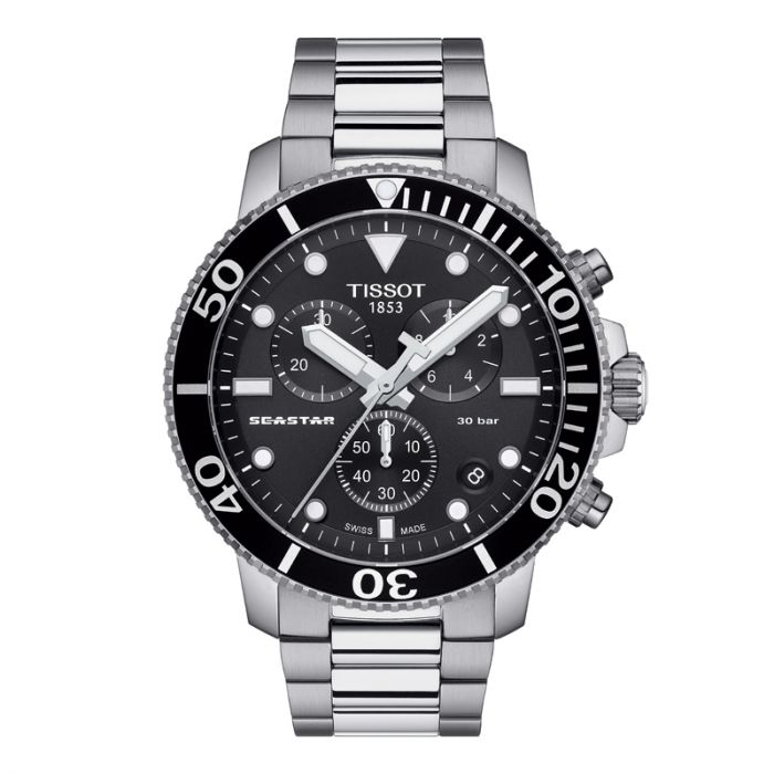 TISSOT Seastar 1000 chronograf armbåndsur med sort skive og lænke