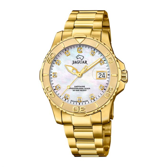 Jaguar Couple Diver herreur i guldfarvet med perlemor urskive