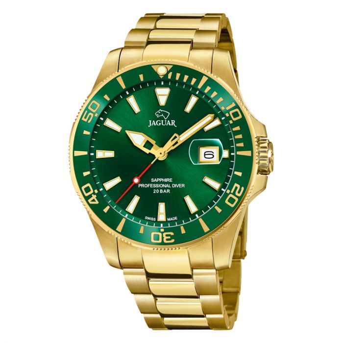 Jaguar guldfarvet Executive Diver armbåndsur med grøn skive