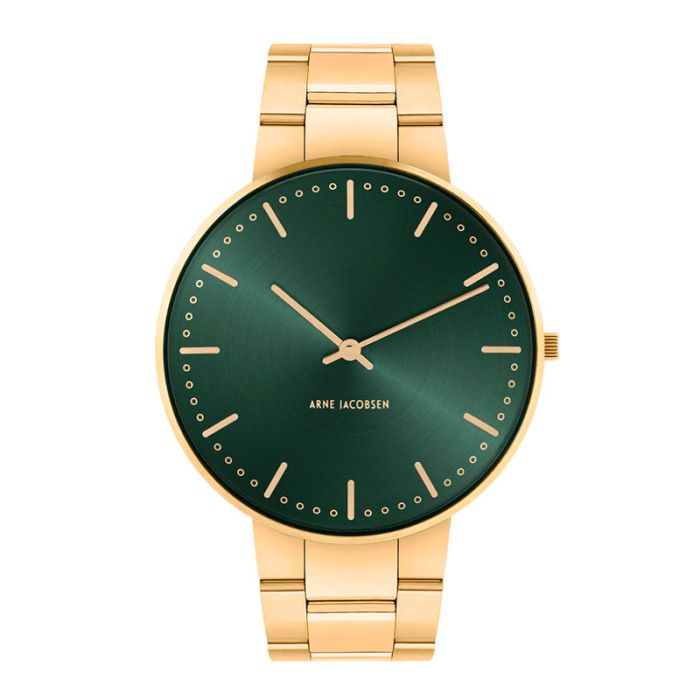 Arne Jacobsen City Hall ur i guldfarvet med Evergreen skive og guldfarvet lænke - Ø40